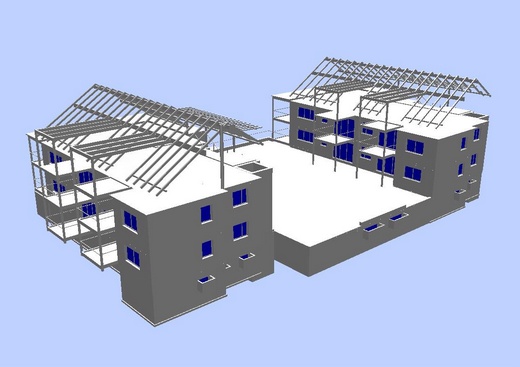 4-geschossigen Zwillingsbau mit einer Gebäude verbindenden, begrünten